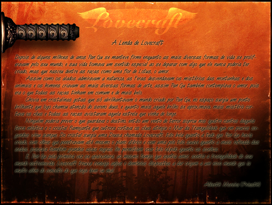 A insígnia de Lovecraft foi encontrada em estranhas escrituras que estava em posse do Taoísta Dongming. Feiticeiros afirmam que aquele misterioso símbolo representava a chegada da Deusa em Pan Gu, fazendo referência ao mar de sangue sustentado por duas asas negras. Foi novamente avistado em um clã formado por anjos e demônios que, embora com suas divergências, permaneciam unidos no propósito de estabelecer uma nova ordem.